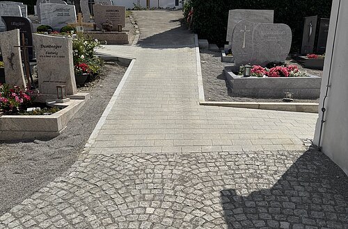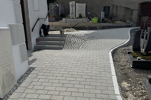 Aktuell soll der Weg auf der Südseite der Kirche bis hoch zum oberen Friedhof erneuert werden.