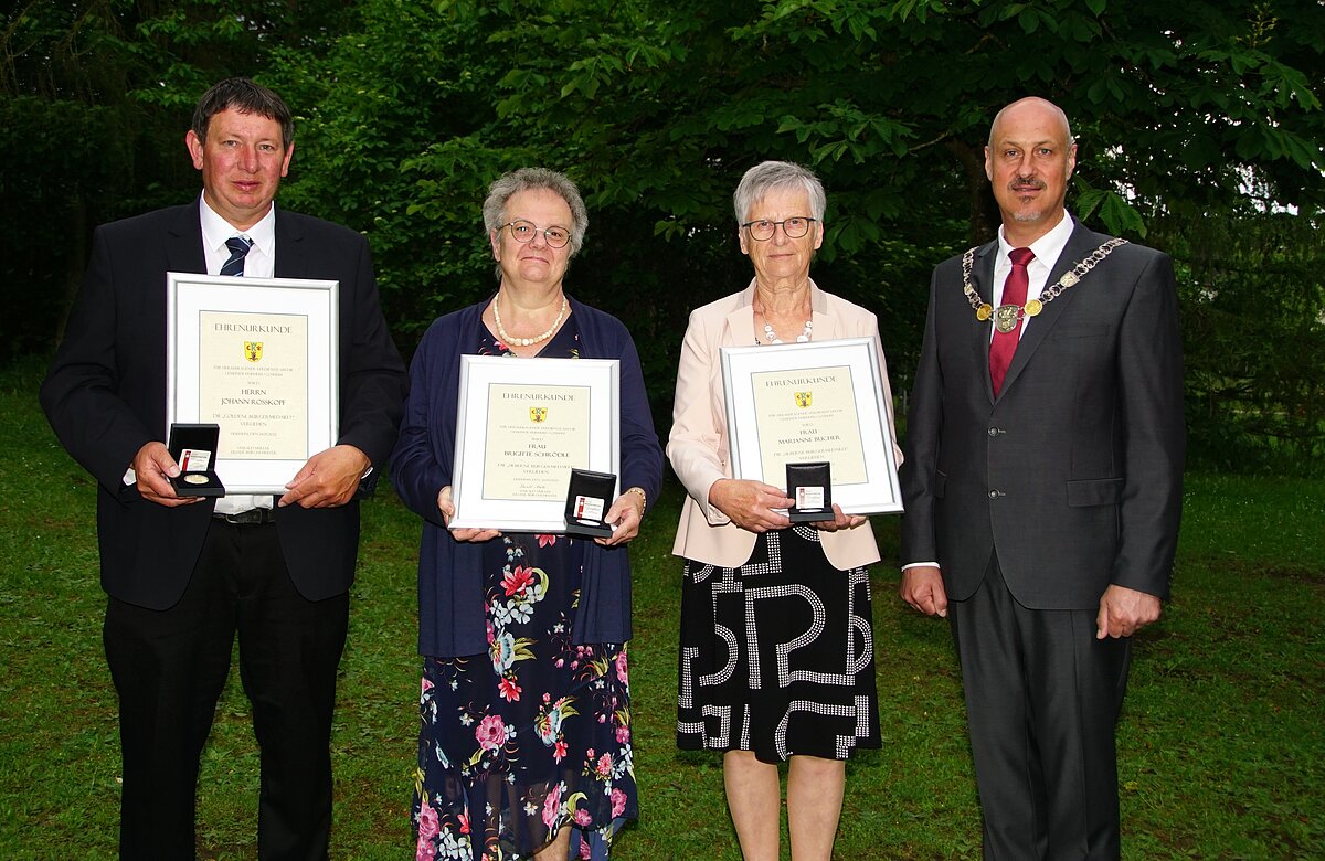 Bei musikalischer Umrahmung durch den Musikverein Huisheim-Gosheim erhielten Frau Marianne Bucher und Frau Brigitte Schrödle die silberne Bürgermedaille für 18 Jahre Tätigkeit im Gemeinderat. Herrn Johann Roßkopf wurde die goldene Bürgermedaille für 24 Jahre Mitgliedschaft im Gemeinderat verliehen. Alle drei Geehrten brachten sich über viele Jahre, zum Wohle unserer Bürgerinnen und Bürger, der Gemeinschaft und unserer Gemeinde, vorbildlich ein. Ebenso waren und sind sie alle unseren Vereinen sehr verbunden. Mein herzlicher Dank gilt ihnen für die unzähligen ehrenamtlichen Stunden zum Wohle von allen.