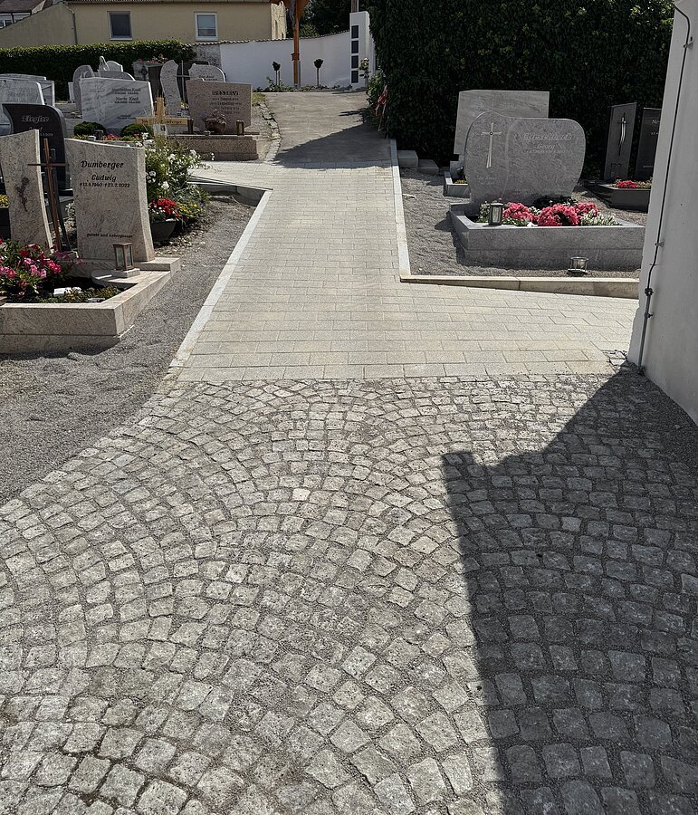 die Arbeiten an unserem Friedhof sind größtenteils abgeschlossen. Auf einer Seite der Kirche wurden alle Treppen entfernt. Nun kann man vom oberen Friedhof her, ohne Stufen zur Kirche gehen. Die Wasserleitungen und der Kanal wurden erneuert. Der Wasserhahn an der Sakristei wurde versetzt. Die Wasserzapfstelle am oberen Kreuz verlegten wir zentral zwischen die Gräber. Somit hat man wesentlich kürzere Wege beim Gießen und muss nicht mehr den steilen Berg hochlaufen.