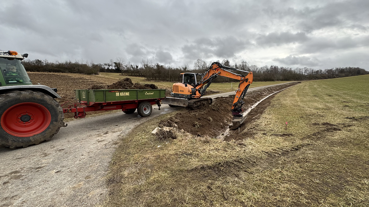 in den letzten Wochen und aktuell werden an verschiedenen Bereichen im Gemeindegebiet Gräben ausgebaggert. Dadurch läuft nicht nur das Wasser bei Regen wieder sauber ab, auch die Drainagen können wieder gut entwässern.
