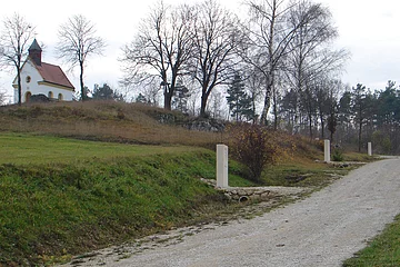Der ausgeschilderte Wanderweg Nr. 18 der Monheimer Alb beginnt und endet an der Himmelfahrtskapelle.